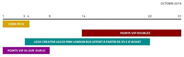 LEGO a par ailleurs pensé aux clients qui achètent des produits DUPLO et leur propose de quadrupler leurs points VIP (1 € dépensé = 4 points) du 29 septembre au 9 octobre.
