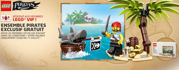 En avant pour l'offre promotionnelle de début juillet proposée par LEGO : Pour toute commande d'un montant minimum de 55 €, LEGO offre aux membres du programme VIP le set 5003082 Pirates Adventures.