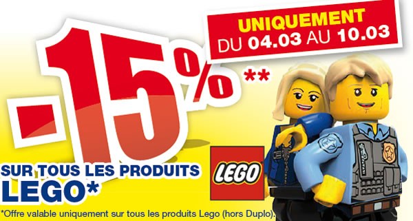 Maxi Toys remet le couvert avec une remise de 15% sur tous les produits LEGO du 4 au 10 mars 2015.