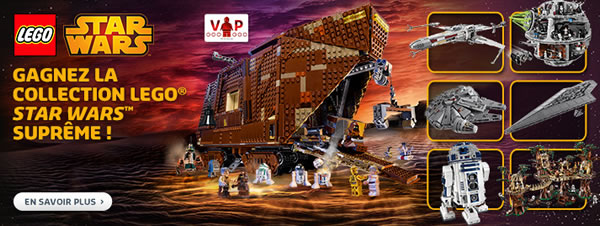 En marge des offres promotionnelles, LEGO propose à tous les clients inscrits au programme VIP qui réaliseront un achat entre aujourd'hui et le 4 mai prochain un tirage au sort permettant de gagner un ensemble de sets d'une valeur de plus 1800 € (Détail des sets accessible en cliquant sur l'image ci-dessus).