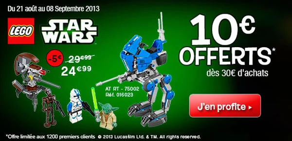 Si vous aviez prévu de commander les sets LEGO Star Wars 75060 Slave I (219.99 €) ou LEGO Creator Expert 10246 Detective's Office (159.99 €) dès leur date de disponibilité effective, c'est à dire le 1er janvier, vous devrez faire un choix : Renoncer à une réduction supplémentaire de 5% du montant total de votre achat à valoir sur une prochaine commande (pour un total de 10% de remise) ou faire preuve de patience pour obtenir le meilleur tarif possible sur ces deux sets exclusifs...