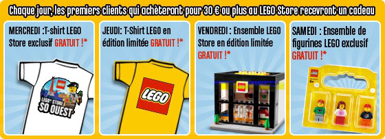 Le 4 avril : Un t-shirt LEGO Store exclusif sera offert pour tout achat d'au moins 40 €.