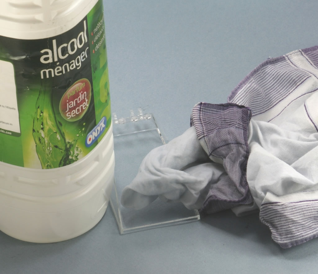 Etape 2 : Dégraissage de la pièce à l'alcool ménager pour éliminer les résidus de graisse issus du démoulage.