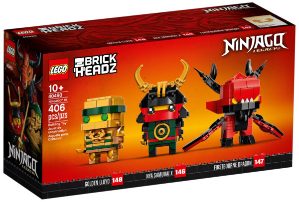 Cette référence de 406 pièces qui célèbre les 10 ans de la gamme LEGO Ninjago permet d'assembler trois figurines, Golden Lloyd (#148), Nya Samurai X (#146) et Firstbourne Dragon (#147).