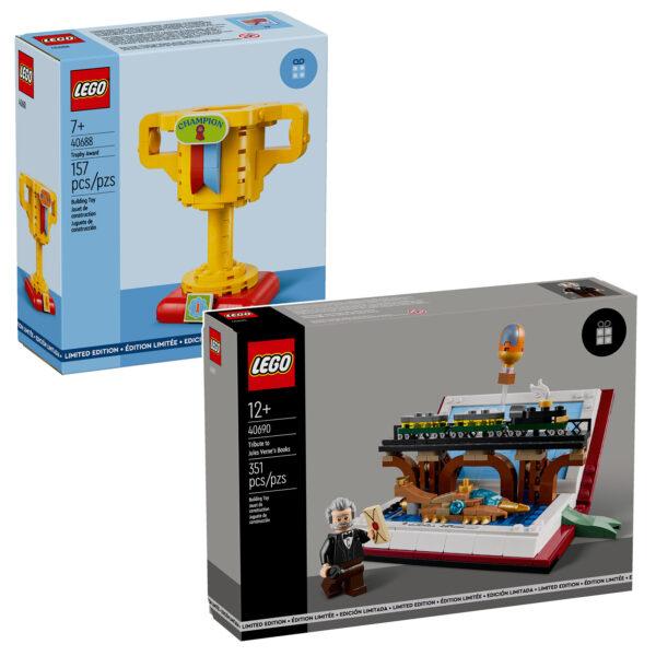 LEGO propose de nouvelles offres promotionnelles en cette fin du mois de juin 2024 avec deux propositions dont les conditions sont plus ou moins restrictives : le set LEGO 40688 Trophy Award offert dès 60 € d'achat nécessite de faire l'acquisition de produits dans les gammes CITY, NINJAGO, Friends, Classic et/ou DREAMZzz, le set LEGO 40690 tribute to Jules Verne's Books est de son côté offert sans restriction de gamme aux membres du programme Insiders jusqu'au 23 juin avant d'être offert dans la limite des stocks disponibles à tous les clients de la boutique officielle en ligne et des LEGO Stores du 24 au 30 juin 2024.