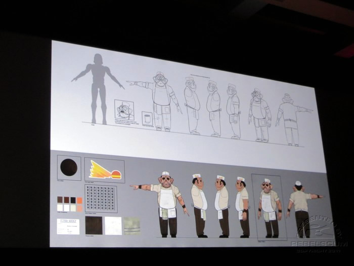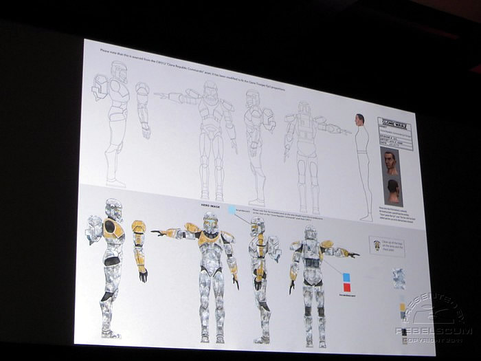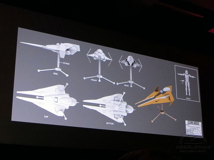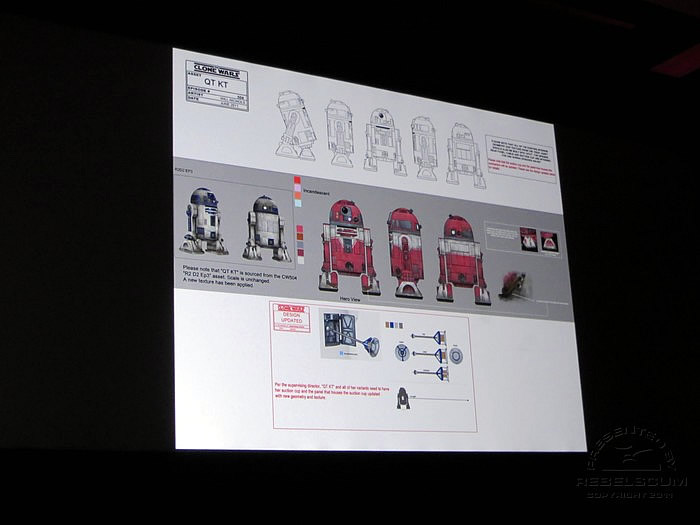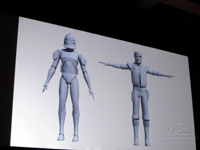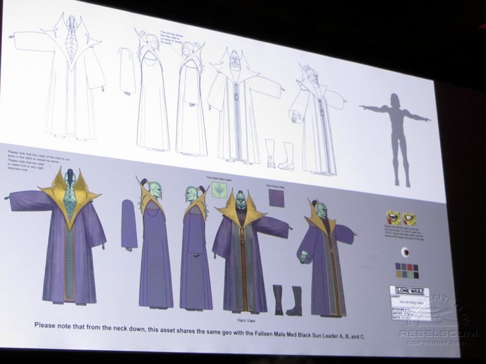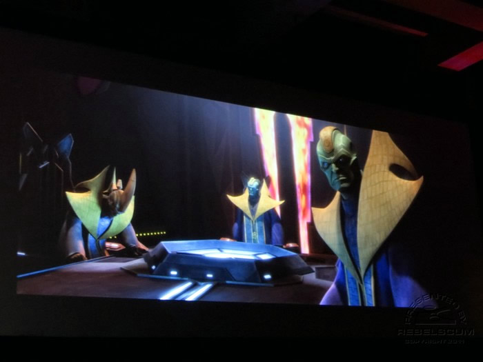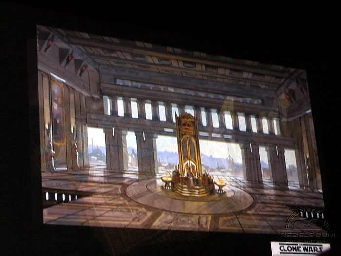 Filoni présentait également les concept arts des quartiers d'Anakin au sein du Temple Jedi avec une scène au cours de laquelle Obi-Wan vient parler à Anakin de ce que pense Yoda des sentiments du jeune Skywalker à propos du Sénateur Rush Clovis. Filoni notait que Ahsoka prenait en assurance et manifestait plus d'indépendance et d'esprit critique qu'au début de sa relation avec Anakin. Dave Filoni ajoutait que l'audience de la série se compose d'ailleurs à 34% d'un public féminin.