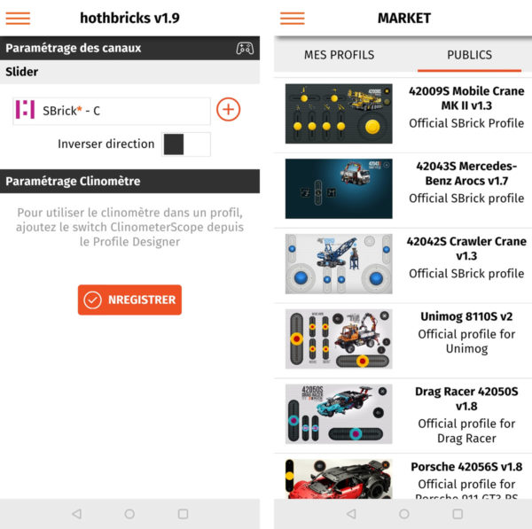 L'application sur smartphone propose également une bibliothèque de profils déjà créés par d'autres fans pour différents modèles LEGO existants. Ces interfaces sont déjà pensées pour utiliser tous les éléments de motorisation des modèles concernés, il suffit d'associer les ports correspondants à chaque bouton ou curseur et vous pouvez passer à l'action en quelques minutes.