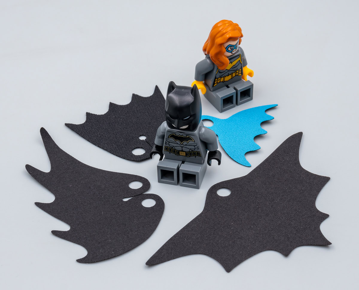 La minifig de Batgirl, livrée ici en version Rebirth, est quasi-parfaite. Il lui manque juste des bottes  assorties avec le reste du costume pour être totalement aboutie. L'effort a été fait sur tous les éléments, cape double face comprise avec intérieur bleu et surface extérieure noire, pour nous offrir une jolie minifig mais les jambes restent désespérément neutres. La chevelure du personnage n'est pas inédite, c'est celle de Black Widow (Marvel), Lois Lane (Superman) ou encore Mera (Aquaman).