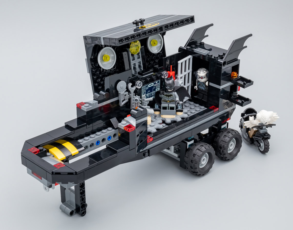 Le jet-ski est même éjecté via une tige qui traverse le plancher du tracteur et il suffit de pousser pour que l'engin soit expulsé. De son côté, le Batjet dispose d'une zone d'atterrissage à l'avant de la remorque et une fois mis en place il contribue à arrondir un peu les formes anguleuses du véhicule.
