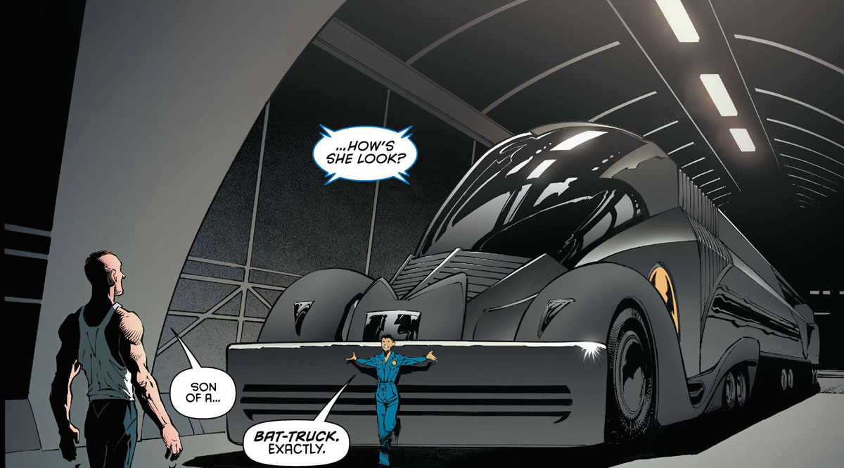 Je pense qu'on tient pourtant ici l'un des meilleurs playsets LEGO disponibles dans l'univers DC Comics, à condition d'admettre que Batman puisse disposer d'un quartier général installé dans la remorque d'un gros camion. L'idée n'est d'ailleurs pas aussi saugrenue qu'il y paraît : en 2015 on découvrait un Bat-Truck au fil des pages du numéro #42 du comic All New Batman, même si la version LEGO n'a pas le design organique de l'engin en question.