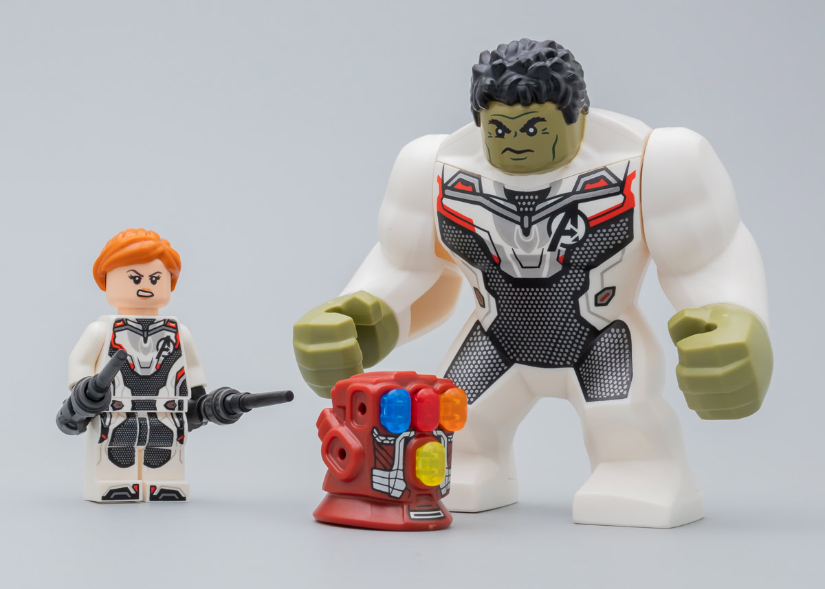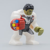 Hulk est ici livré en version Quantum Suit et la tenue est à peu près fidèle à celle du film, à part peut-être pour les détails sur la poitrine et le logo surdimensionné. LEGO fournit le Nano Gauntlet que le personnage enfile dans une scène mais la tenue portée par Bruce Banner à ce moment du film n'est pas celle livrée ici.