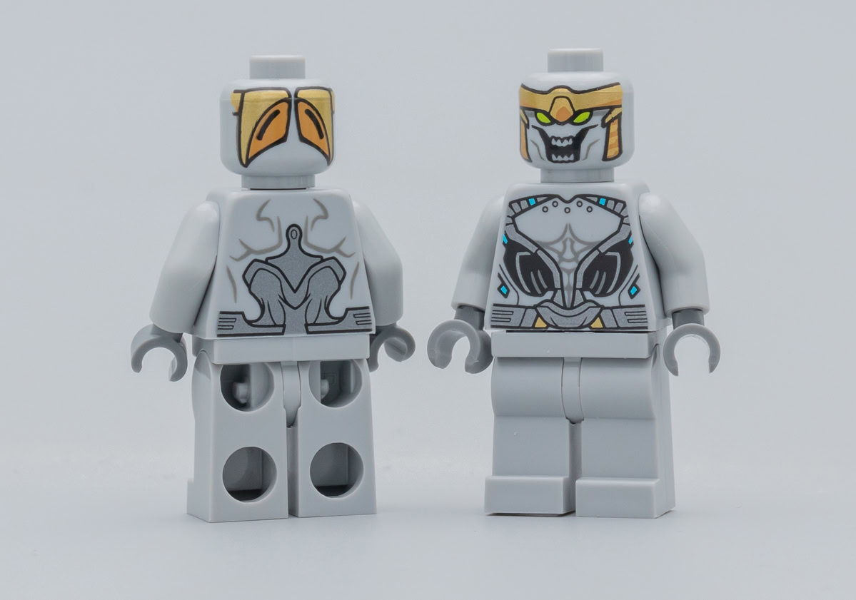 La minifig de Black Widow n'est pas inédite, c'est celle déjà livrée dans le set 76126 Ultimate Quinjet commercialisé en 2019. Même constat pour les deux Chitauris aux jambes un peu tristes qui étaient eux aussi livrés dans le set 76126. Pas d'armes pour les deux méchants, ils sont aux commandes de leurs engins respectifs et la petite plateforme volante est équipée de deux Stud-Shooters.