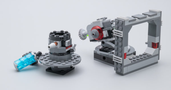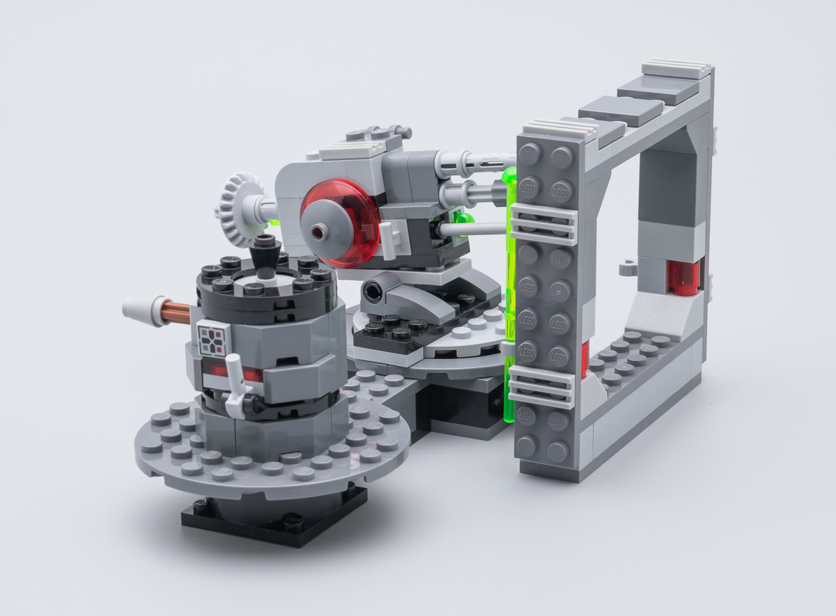 On remarque également qu'il n'y a qu'un seul poste d'artilleur au pied du canon alors que l'arme équivalente dans le set 75159 UCS Death Star permet d'installer correctement deux soldats aux commandes. Ici, LEGO ne fournit même pas un siège, il faut se contenter des quatre tenons disponibles à la droite du canon.