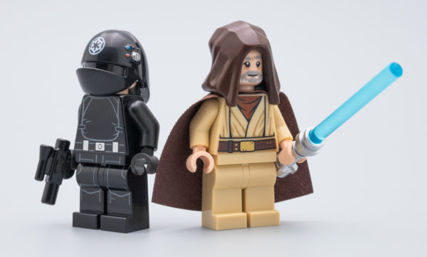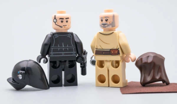 La minifig d'Obi-Wan Kenobi conserve le visage vu dans plusieurs boites depuis le set 75052 Mos Eisley Cantina (2014) mais elle bénéficie ici d'un torse inédit et d'une nouvelle capuche.