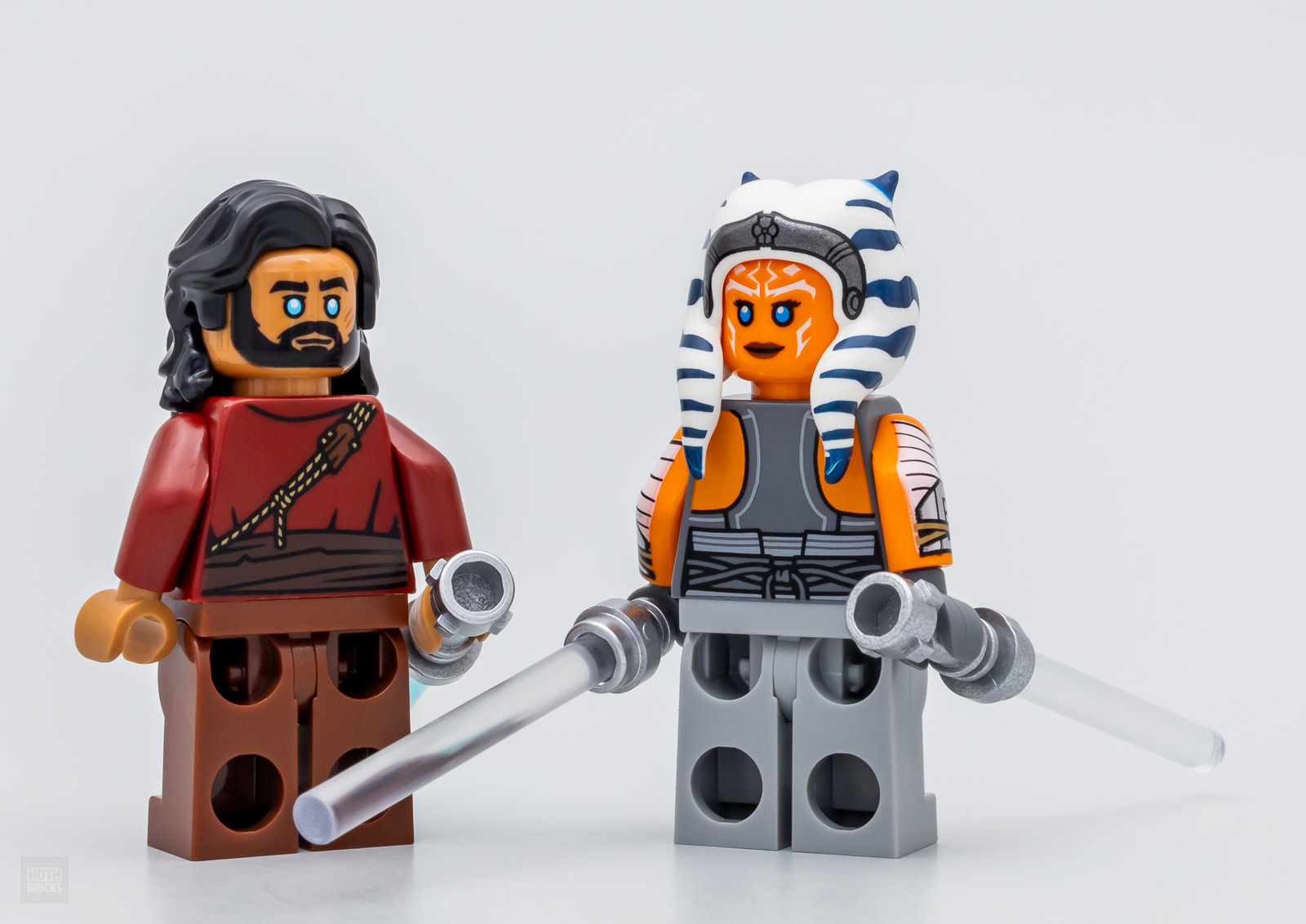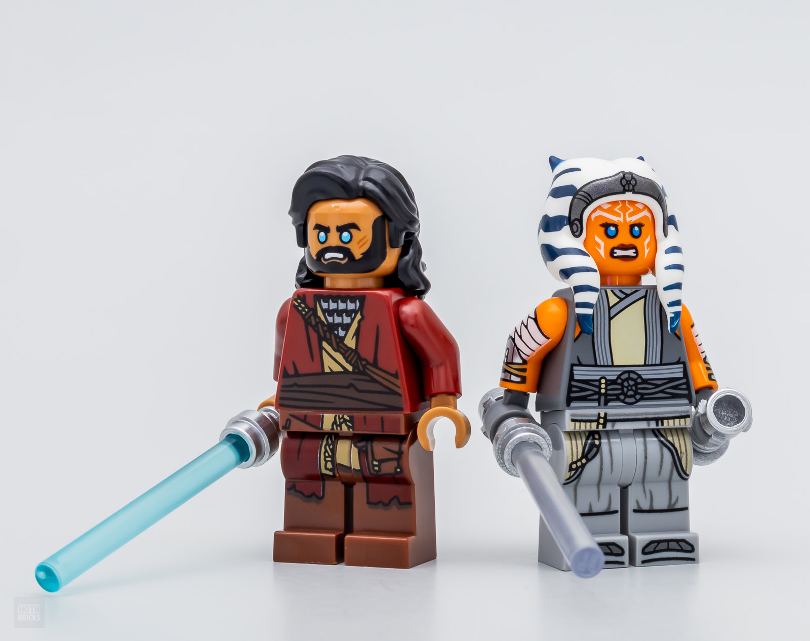 Morgan Elsbeth obtient cette fois des jambes à la place de la robe vue dans le set 75364 New Republic E-wing vs. Shin Hati's Starfighter ainsi qu'un marquage facial très à propos. Elle brandit l'épée de Talzin qui profite ici de la pièce ayant servi pour la lame du Darksaber mais dans un coloris vert transparent. Ahsoka et Ezra profitent tous deux de nombreux détails graphiques qui font de ces minifigs de belles interprétations des personnages vus à l'écran.