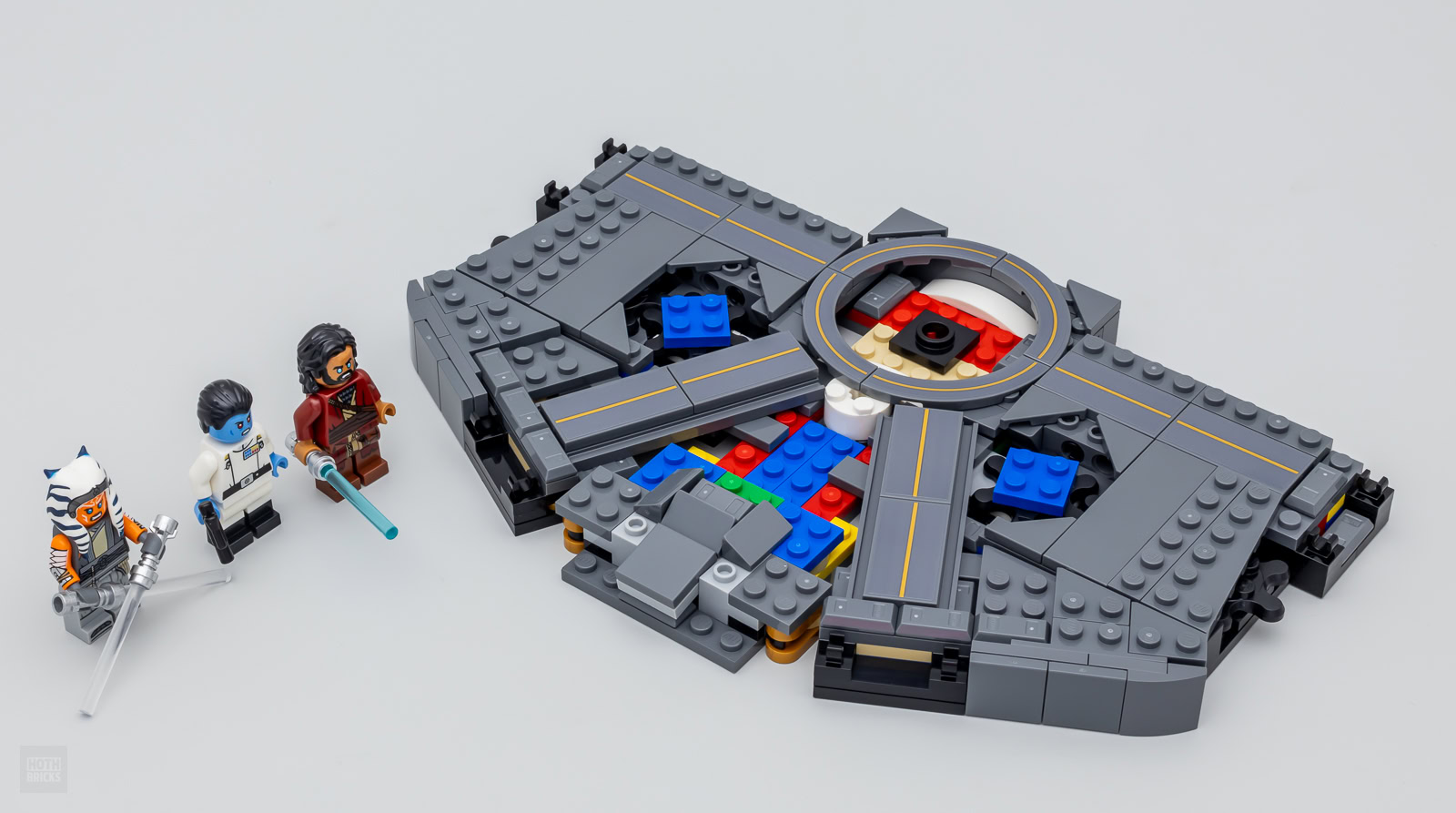 LEGO nous vend ce produit comme un playset pour enfants offrant plusieurs fonctionnalités qui doivent en principe permettre de s'amuser avec et il faut bien admettre que les plus jeunes peuvent effectivement reproduire une scène vue dans la série Star Wars : Ahsoka en profitant au passage des trois plateformes tournantes intégrées au plateau de jeu et d'une bascule pour faire décoller Ezra. Pourquoi pas, il s'agit avant tout d'un simple jouet et on ne peut pas reprocher à LEGO d'avoir fait l'effort de permettre un peu d'interactivité, surtout en échange de 55 €.