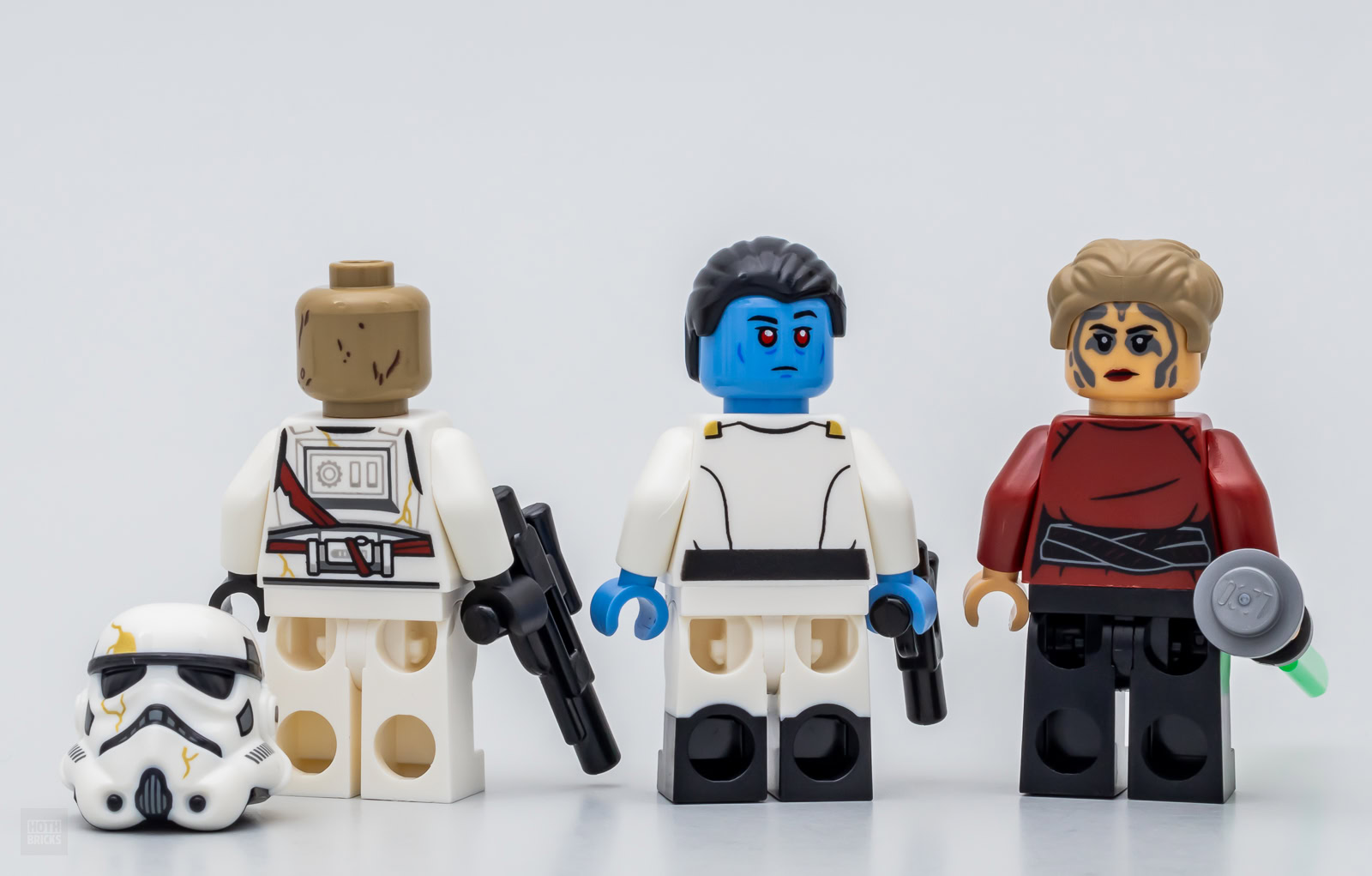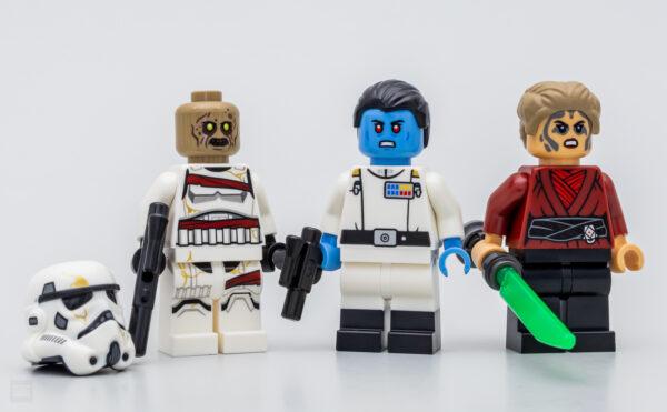 Du côté des minifigs livrées dans cette boite, les fans sont servis avec le retour du Grand Admiral Thrawn, vu pour la première fois chez LEGO en 2017 dans le set 75170 The Phantom, et ici équipé de "vraies" bottes via l'injection en deux couleurs des jambes. Les autres personnages sont tous graphiquement réussis avec des tampographies abouties et un niveau de détail très satisfaisant.