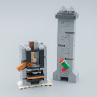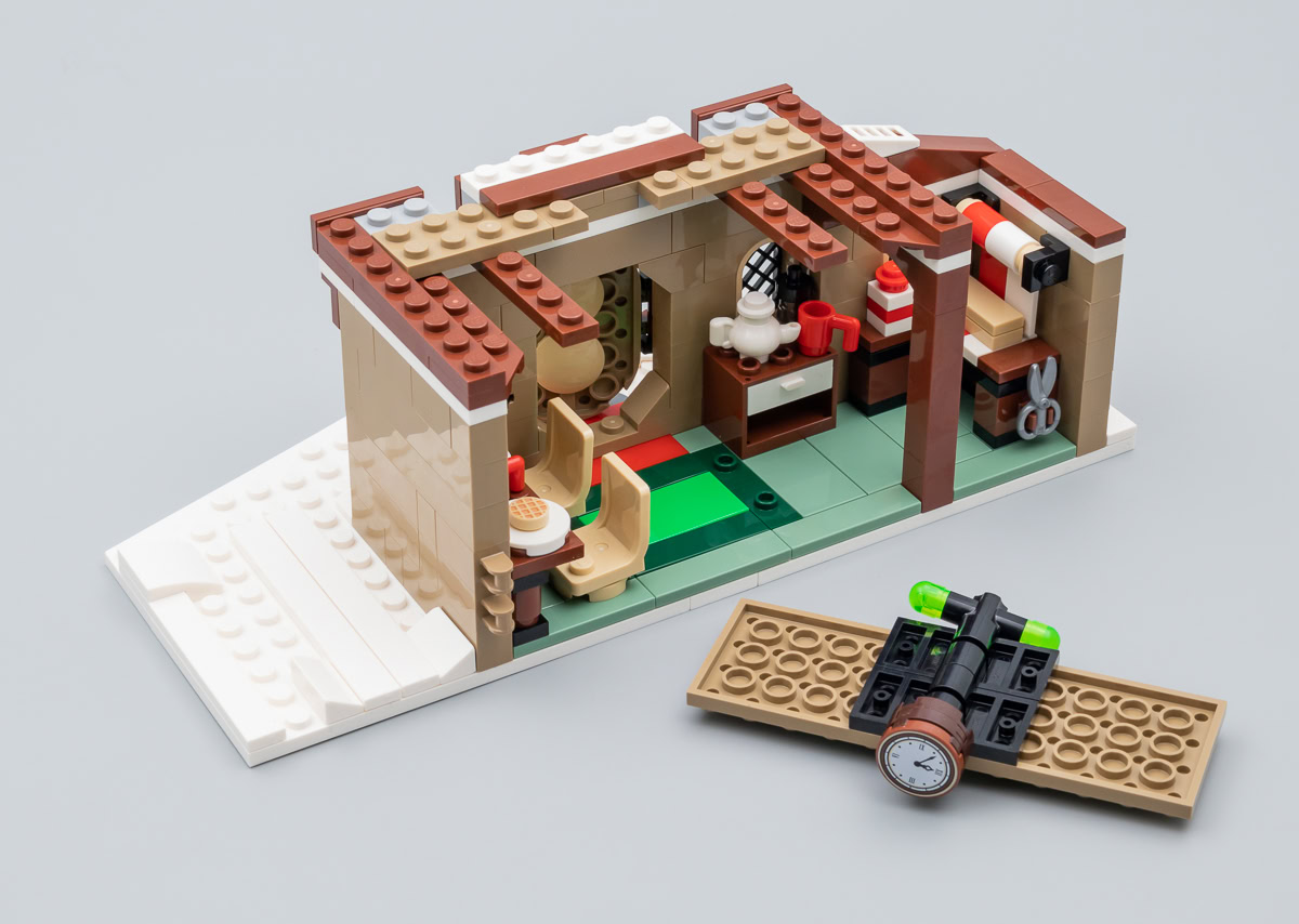 Deux "grosses" fonctionnalités sont disponibles ici : Le mécanisme qui permet de faire basculer les lits superposés installés à l'étage en tournant le bouton déguisé en horloge et le distributeur de gaufres intégré à la cheminée avec un plateau basculant pour récupérer la friandise évacuée par la machine. On ne va pas se plaindre de pouvoir s'amuser un peu avec ce set, c'est à mon avis toujours une bonne nouvelle lorsque les designers font l'effort de nous proposer des assemblages qui offrent une certaine interactivité, même anecdotique.