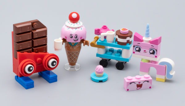 Tout est tampographié dans ce set, pas de stickers et c'est tant mieux. Le cornet de glace est un assemblage de pièces qui ne vous seront donc pas franchement utiles pour construire autre chose mais la figurine est tellement réussie qu'elle mérite de trôner sur vos étagères ou dans vos dioramas urbains pour servir d'enseigne à un marchand...de glaces par exemple. Même chose pour la barre de chocolat avec ses faux airs de Mixel. On en mangerait.