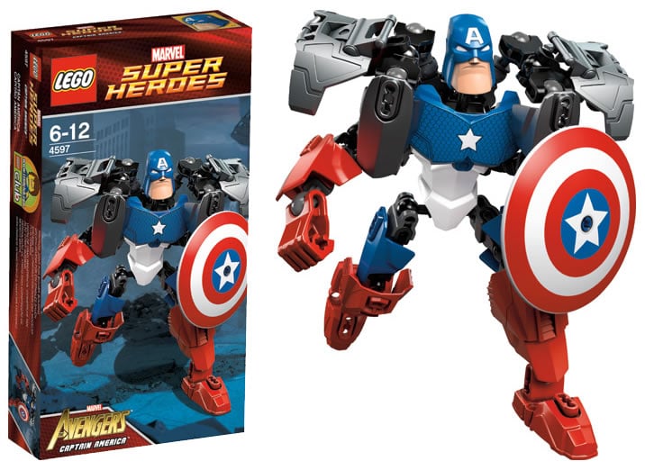 Captain America (Set 4597) aurait pu être réussi si il n'arborait pas ces inutiles épaulettes blindées qui n'ont rien à faire là. Le bouclier est joli et servira sdans doute à quelques MOCeurs inspirés pour reproduire Le Cap à l'échelle du bouclier, mais avec des pièces System.