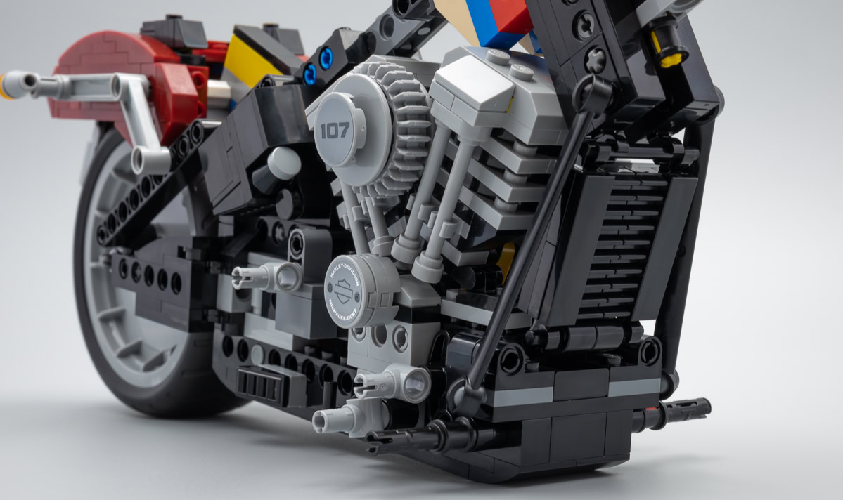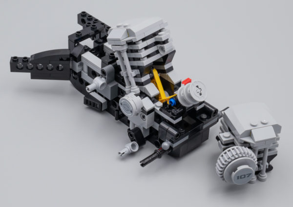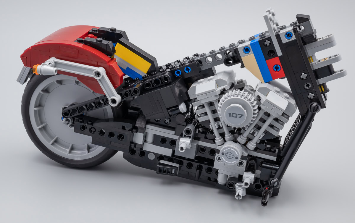 Le châssis de la moto est principalement constitué de pièces Technic et durant l'assemblage des premières pièces on en oublie presque qu'il s'agit ici d'un produit de la gamme LEGO Creator Expert. Le mélange de ces deux univers LEGO fonctionne ici à merveille, chaque catégorie de pièce étant utilisée à bon escient avec en point de mire la volonté de proposer un produit solide, fonctionnel et esthétiquement cohérent.