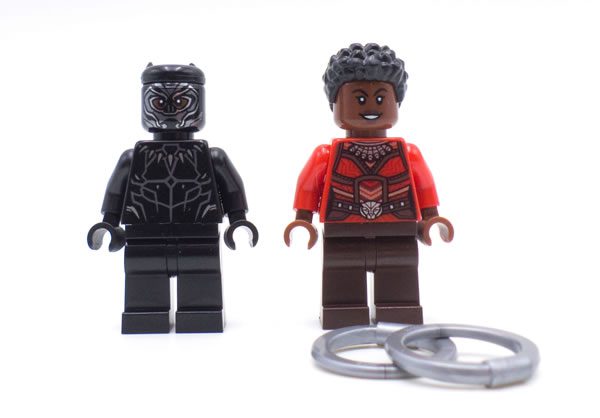 Concernant les minifigs, le set permet d'obtenir quatre personnages : Black Panther, Nakia, Killmonger et Ulysse Klaue.