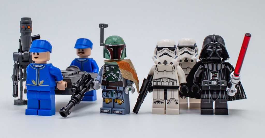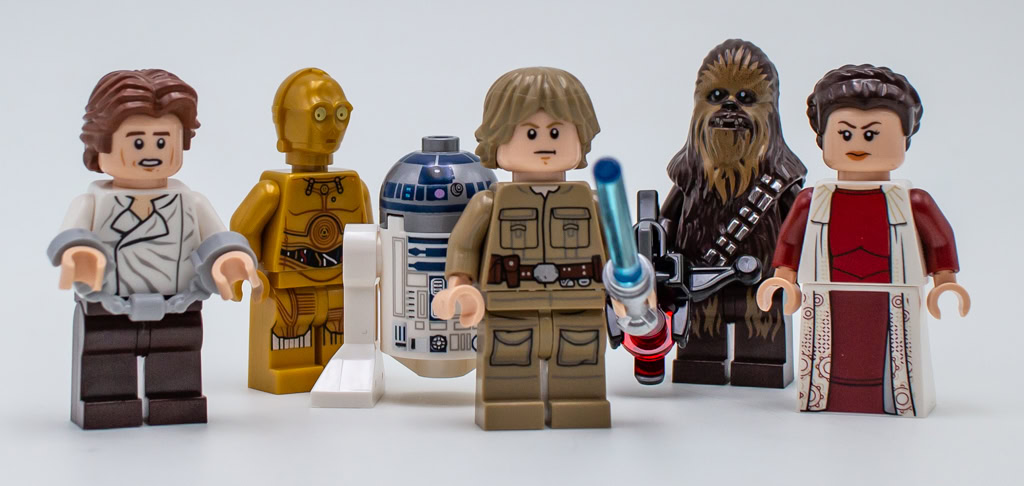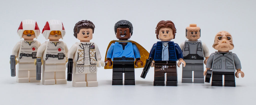 Du côté des minifigs, le fan service entre encore en action de fort belle manière avec une flopée de personnages dont Leia et Han Solo livrés dans deux versions (Hoth et Cloud City, on se change souvent dans Star Wars). Les collectionneurs seront aux anges, même si de mon point de vue ceux qui se contentent de les aligner dans des cadres Ikea devraient plutôt acquérir leurs personnages préférés au détail sur eBay ou Bricklink.