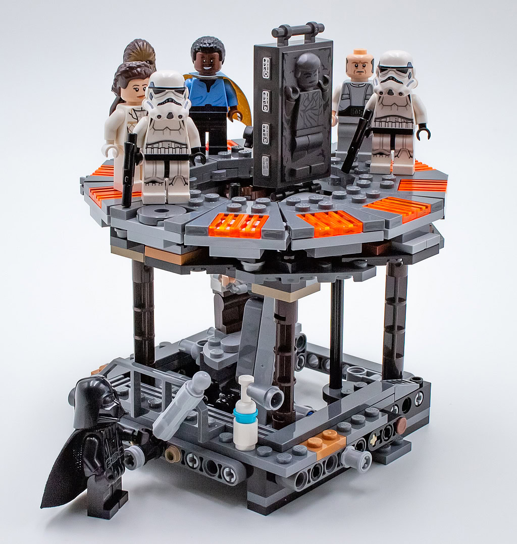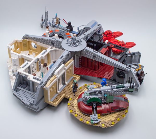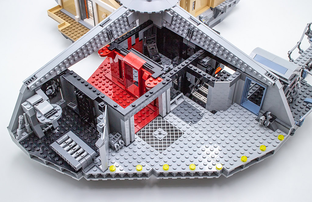 Là où les sets 10188 Death Star (2008) et 75159 Death Star (2016) sont des compromis acceptables parce qu'ils s'efforcent de conserver tant bien que mal l'aspect général du lieu concerné, le set 75222 Betrayal at Cloud City ne fait même pas cet effort. La répartition et la finition des différents espaces est discutable, avec une plateforme d'atterrissage pour le Twin-Pod Cloud Car qui ne méritait sans doute pas d'occuper autant de place et une salle de réception un peu minimaliste avec ses chaises posées par terre...