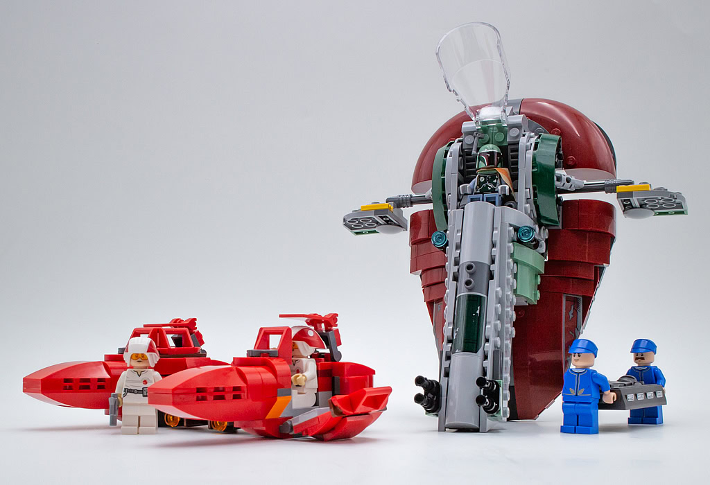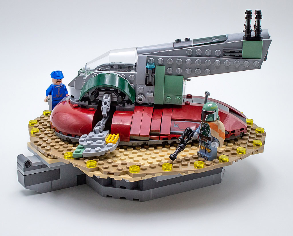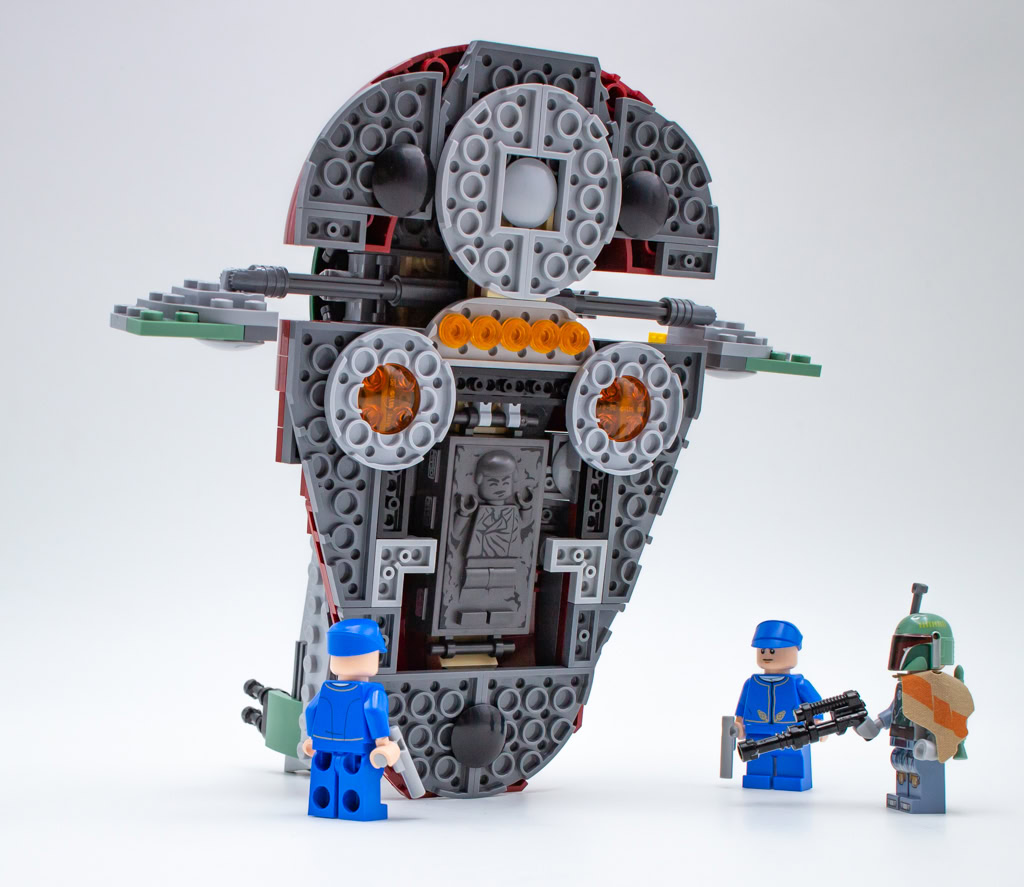 D'un côté, le pilote du Cloud Car est un peu à l'étroit et de l'autre il faut orienter l'antenne du casque de Boba Fett dans la bonne position pour pouvoir refermer la verrière du Slave I. Certains trouveront ça mignon et Chibi, d'autres trouveront ça tout juste acceptable. Les goûts et les couleurs ne se discutent pas et on fera avec. Ceux qui veulent un Slave I à une échelle plus cohérente n'ont qu'à investir dans le set 75060 UCS Slave I commercialisé depuis 2015 et encore disponible à 219.99 €.