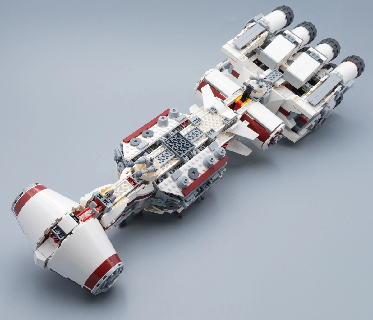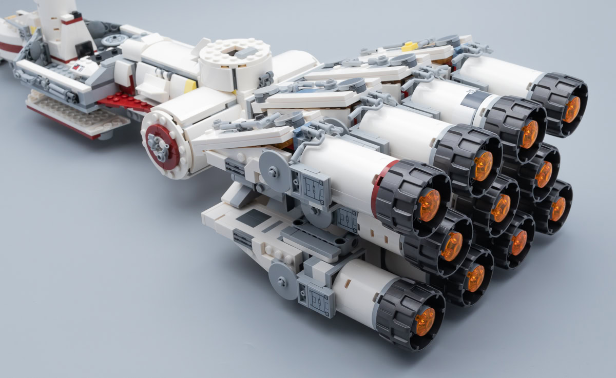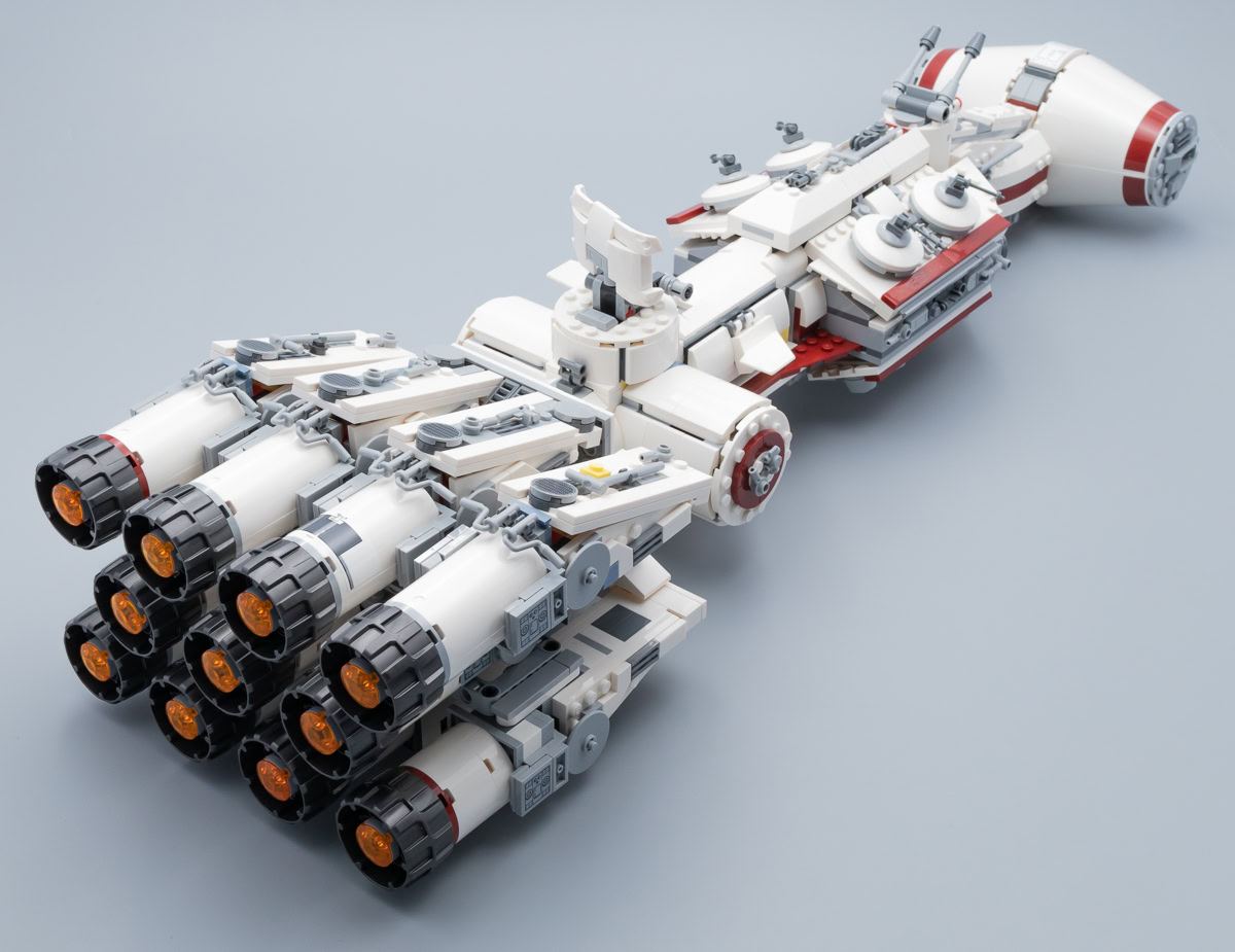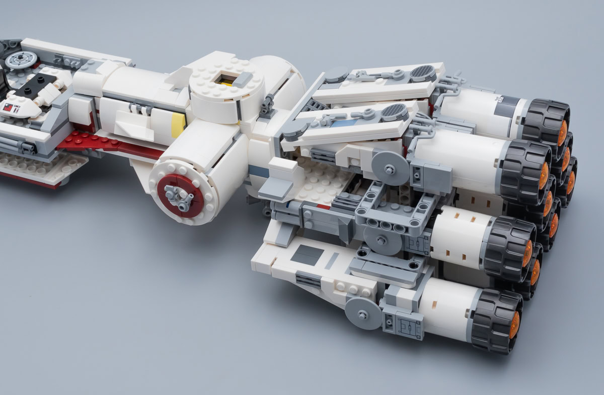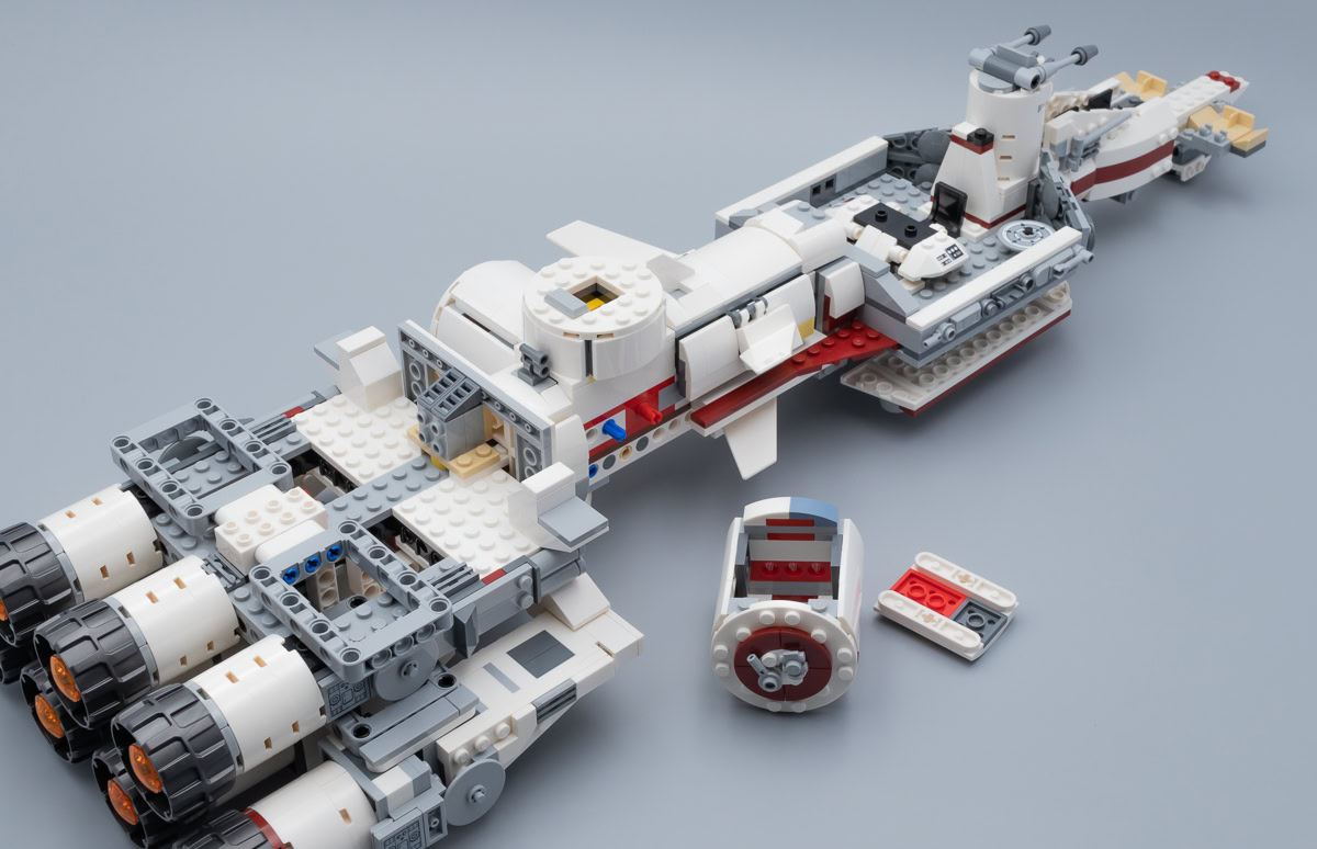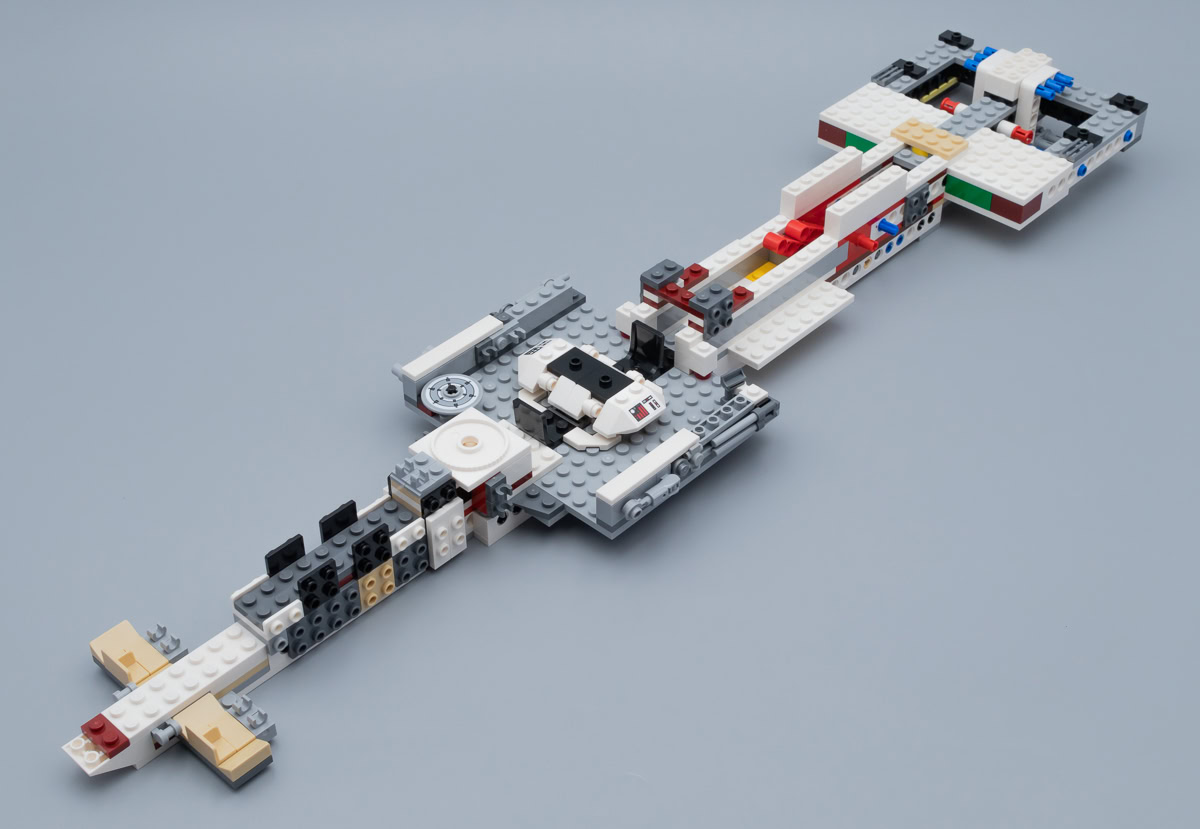Comme d'habitude, il y aura toujours quelques fans pour ne jurer que par la version UCS de 2001 ou par le playset de 2009. C'était peut-être mieux avant pour certains, mais je pense qu'il convient d'aborder cette nouvelle version moins pataude que celles de 2001 et de 2009 sans préjugés. À part le raccourci esthétique symbolisé par les quatre ailerons placés sur le fuselage du vaisseau juste devant la tourelle surmontée du radar, la reproduction de la maquette vue dans A New Hope me semble plutôt convaincante.