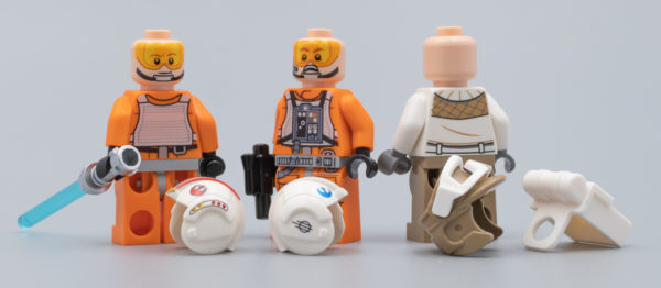 Luke était déjà livré dans le set 75235 X-Wing Starfighter Trench Run (4+). Le personnage bénéficie donc ici aussi de deux visages dont un avec visière relevée, ce qui n'est pas le cas de la tête de Dak Ralter qui affiche la visière en place des deux côtés.